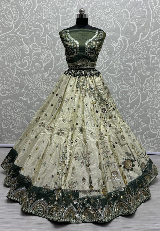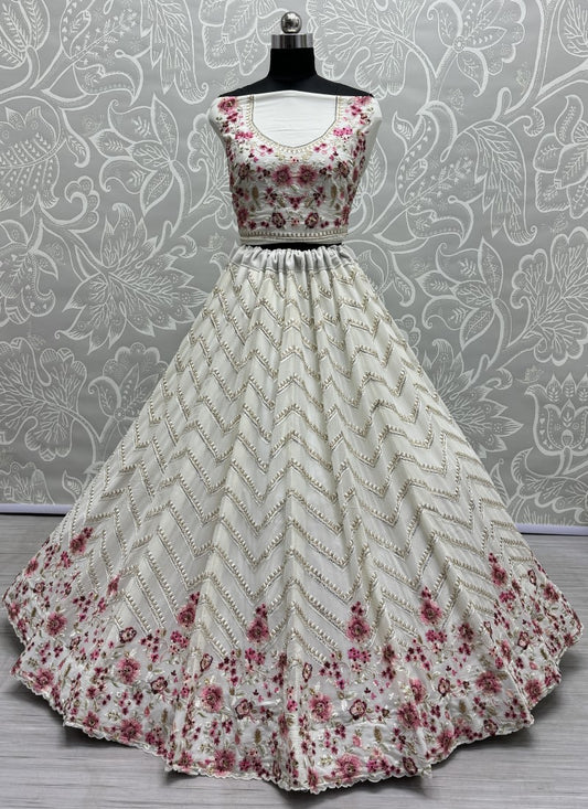Striking Multi thread and zari work combine with full of zircon diamond perfect partywear Lehengacholi in White