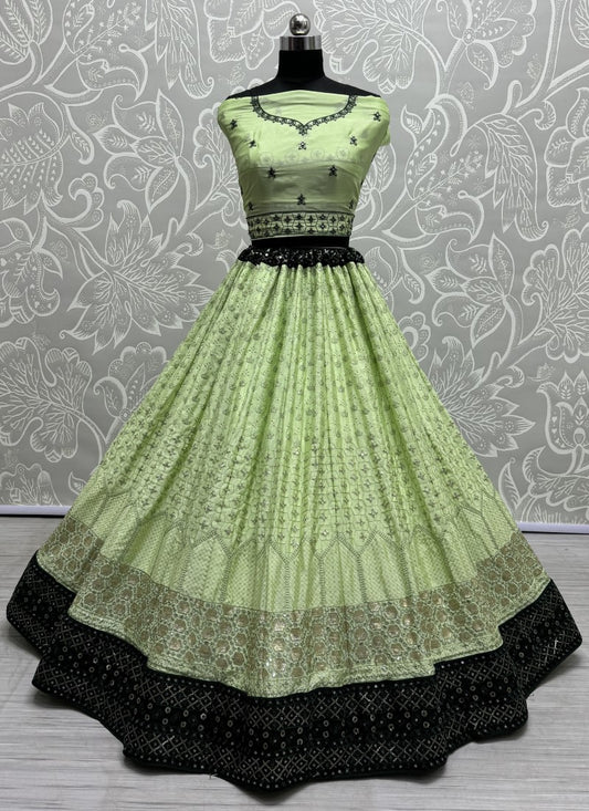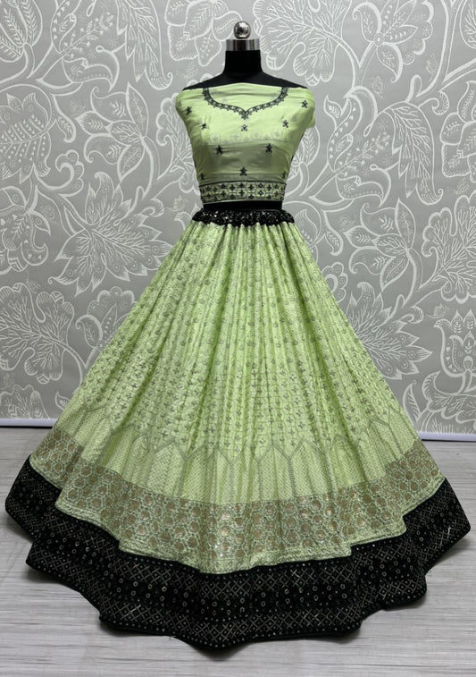 Sequin and cotton thread combine contrast matching partywear Lehengacholi in Pista Colour