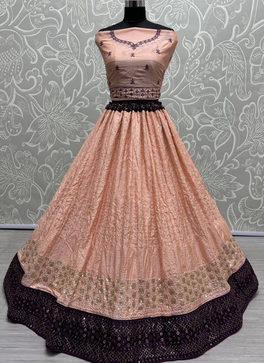 Sequin and cotton thread combine contrast matching partywear Lehengacholi in Peach Colour