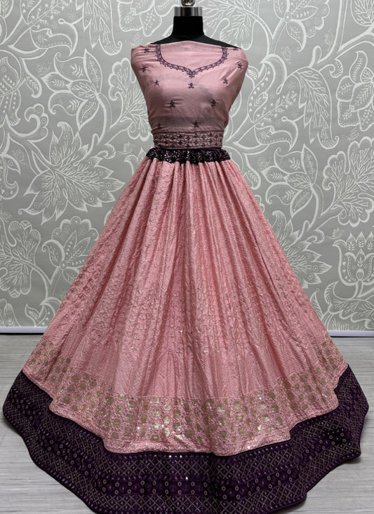 Sequin and cotton thread combine contrast matching partywear Lehengacholi in Pink Colour