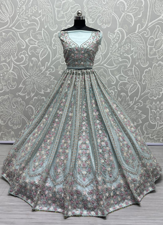 Pastel Sequins Combine Flower Pattern Exceptionally Designed Sky Lehengacholi