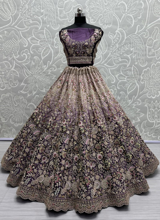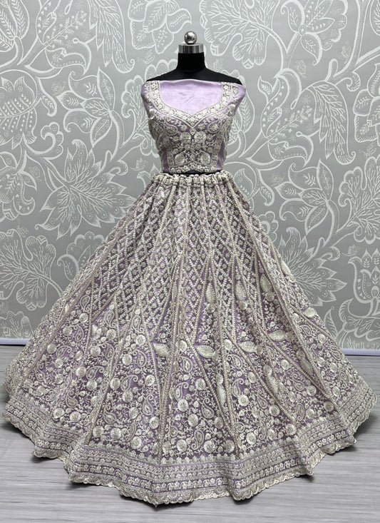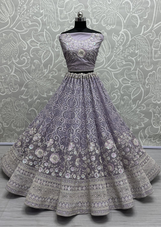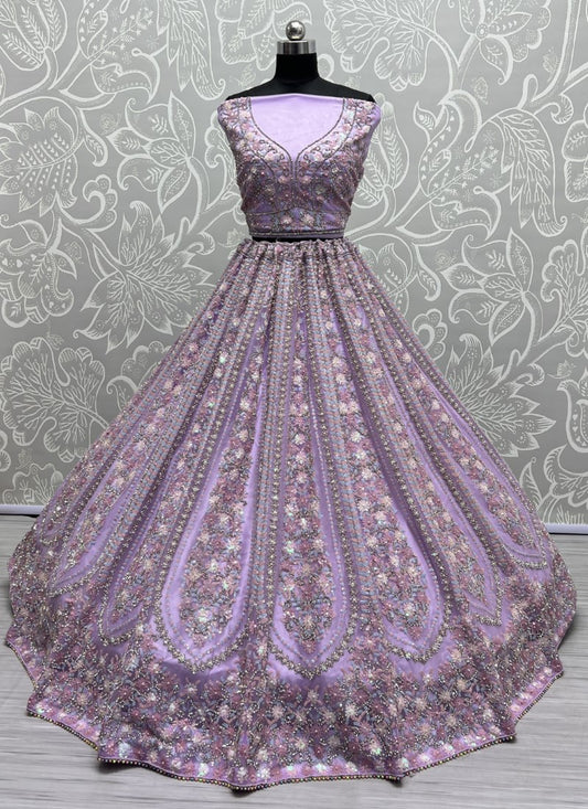 Beautifully Fancy sequins and Dori work combine sophisticated embroidered designer Partywear Lehengacholi in Lavender
