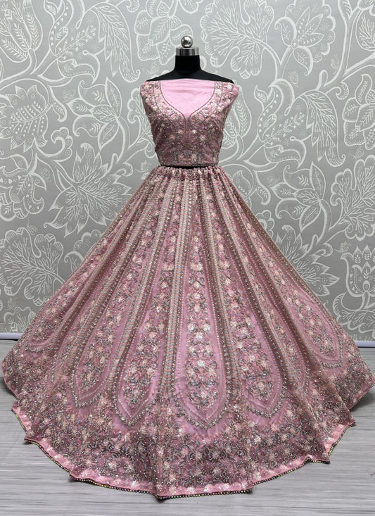 Sophisticated Designed Sequins and Dori Combine Partywear Lehengacholi in Pink