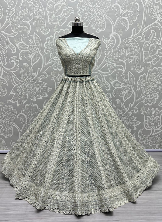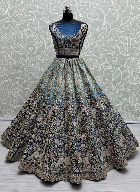 Neatly Dori and Sequin combine Crafted Partywear Aqua Lehenga choli