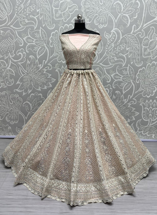 Neatly Dori and Sequin combine Crafted Partywear Pastel Lehenga choli