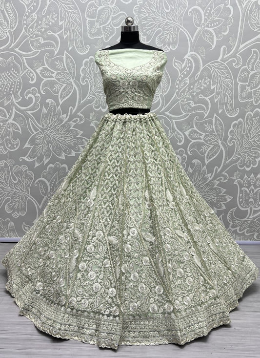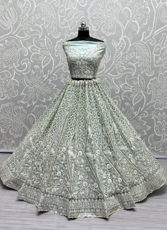 Dori and Zircon Diamond Combine Designer Partywear Mint Lehengacholi