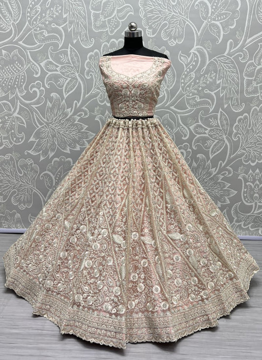 Neatly Dori and Sequin combine Crafted Partywear Peach Lehenga choli