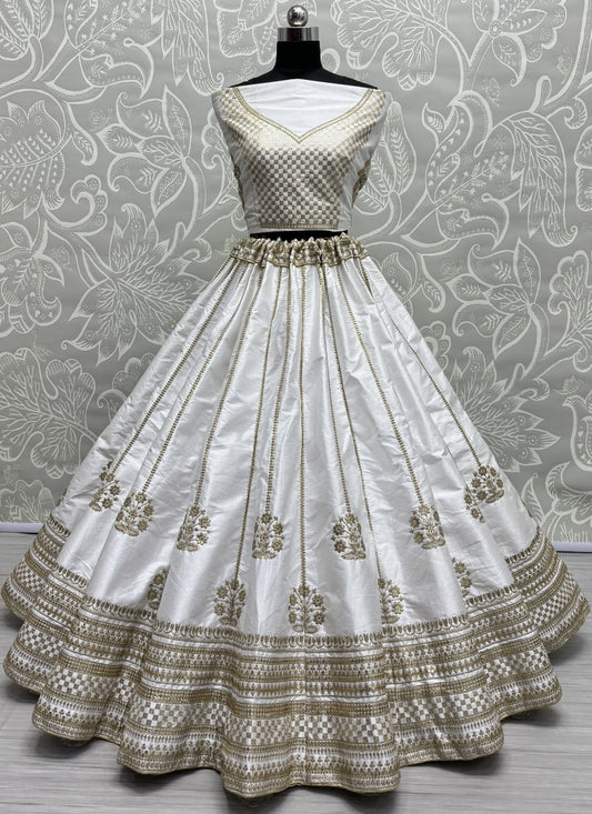Pure Chinon & Silk Crafted in metalic Sequins with zari Embroidery Flaired Partywear Lehengacholi