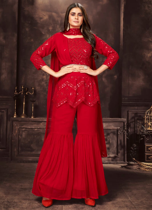 Crimson indo-western style Georgette Palazzosuit