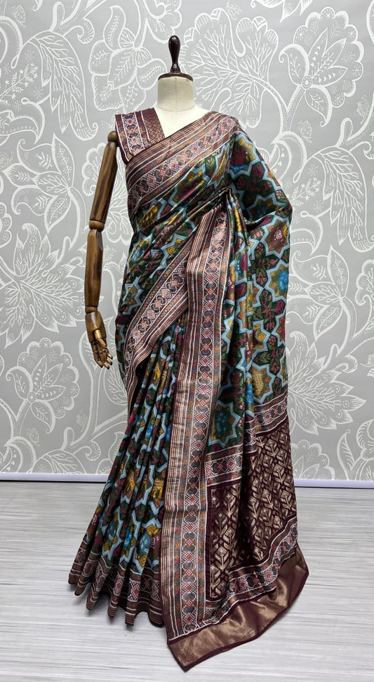 Pure Meena Silk and Dyed Silk Thread Crafted Authentic Patola Saree