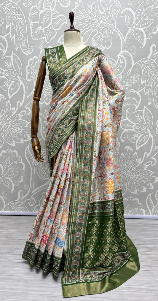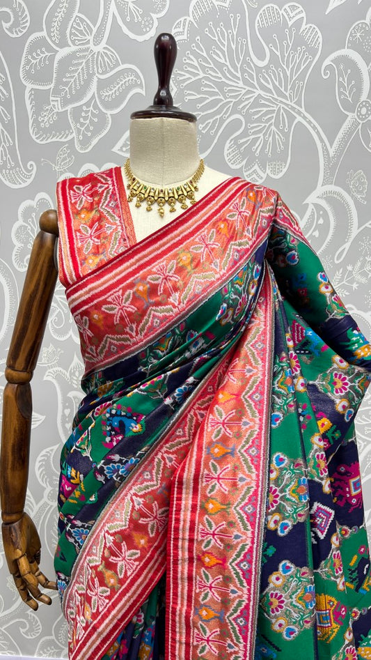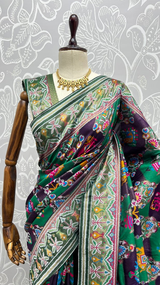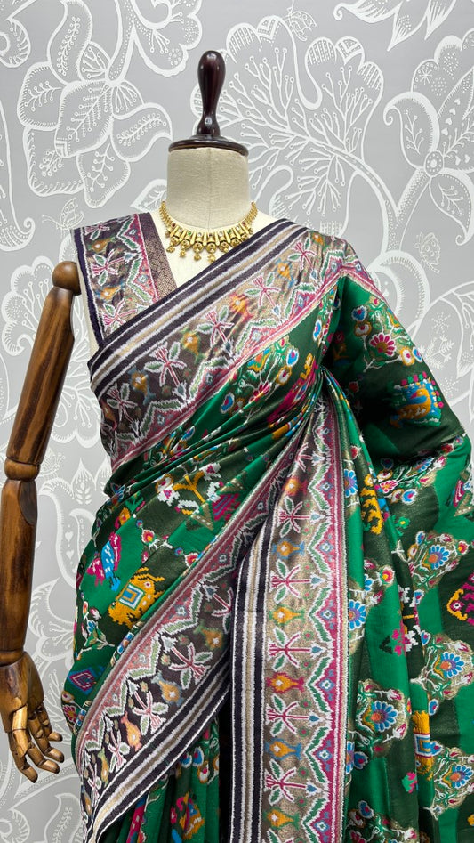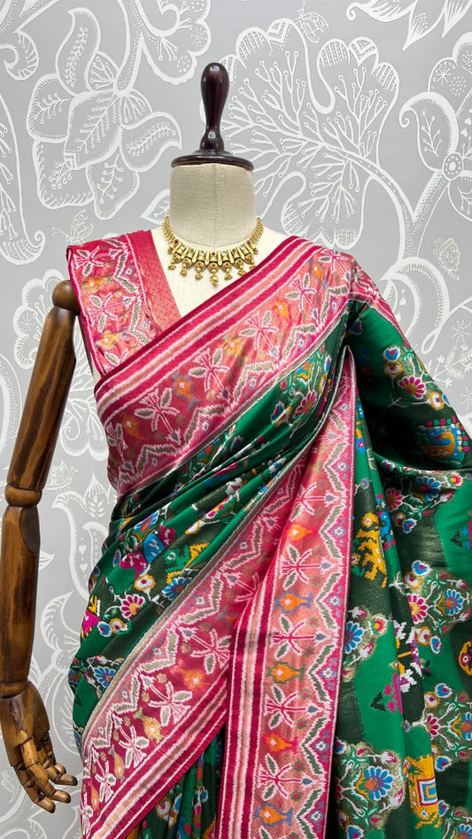 Hand Dyed Meena Silk Thread Crafted Patola Saree Green