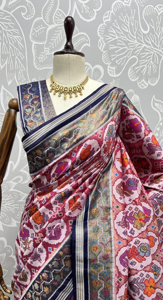 Pure Meena Silk and Dyed Silk Thread Crafted Authentic Patola Saree Pink