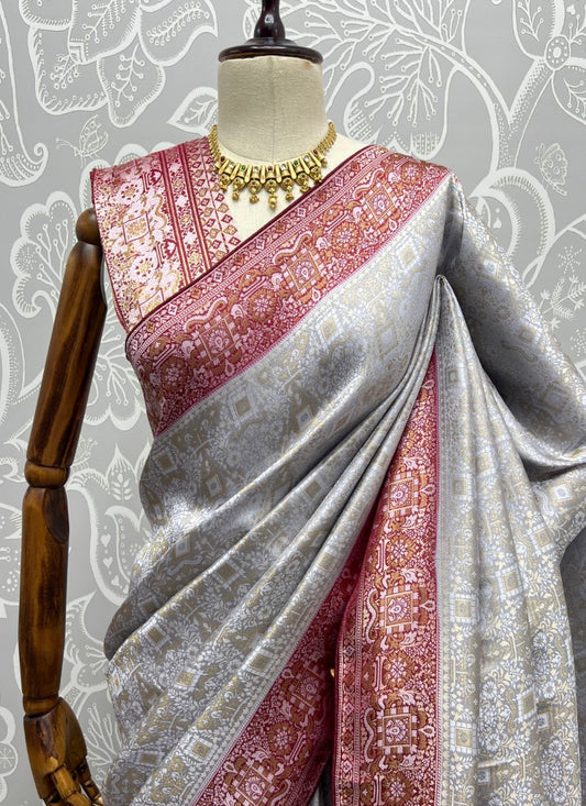 Smooth Jecquard silk weaving in different Zari silk Saree with blouse
