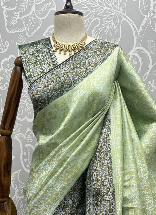 Pista Smooth Jecquard silk weaving in different Zari silk Saree with blouse