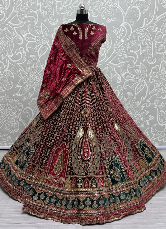 Exclusive Embroidered Wedding Lehenga Choli In Rashberry Maroon
