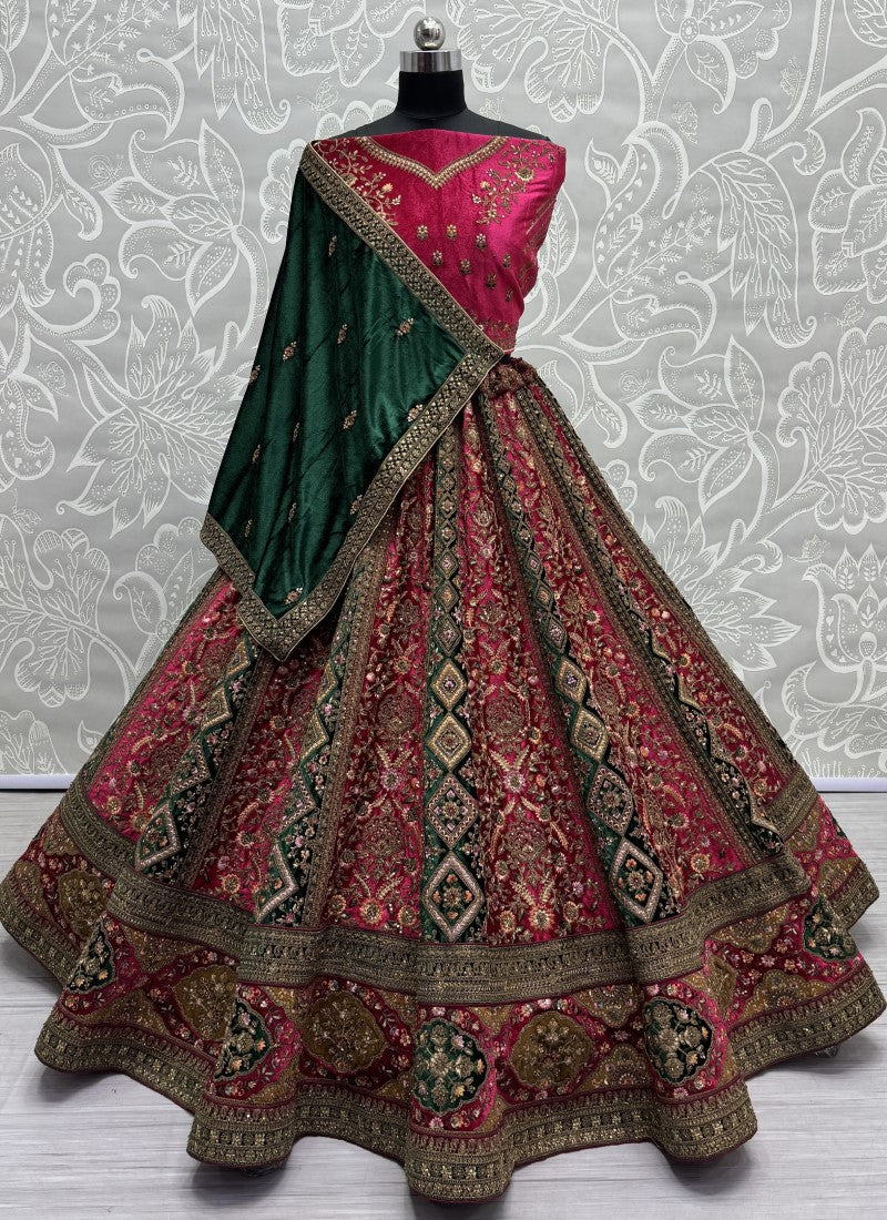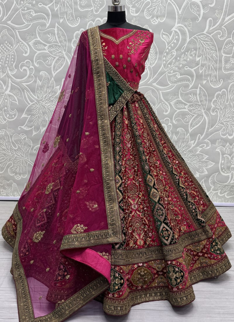 Alternate Rani Pink Velvet Kali work and Fancy embroidered Lehenga choli with double dupatta