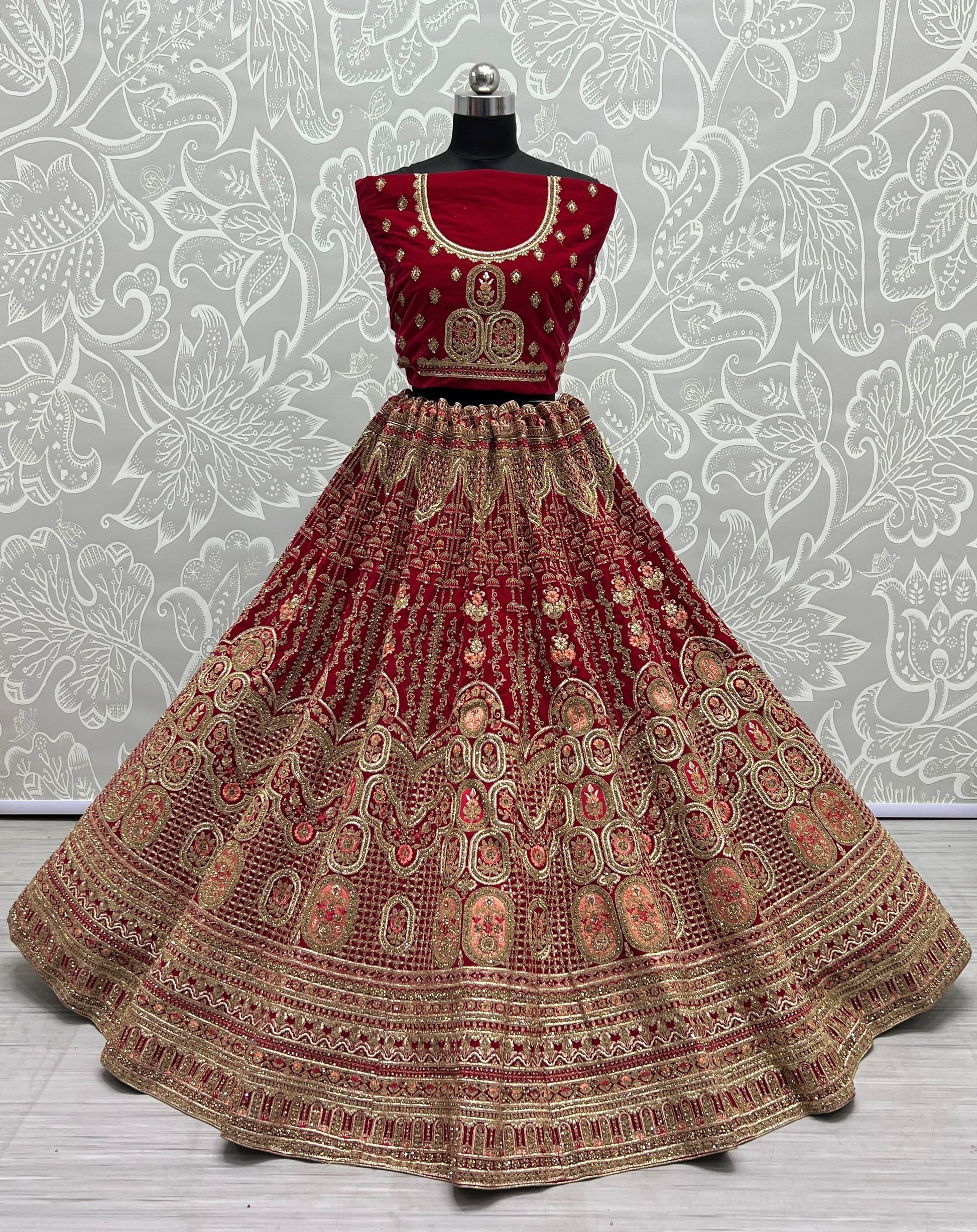 Antique zari and Dori embroidered Velvet Lehengacholi Pink