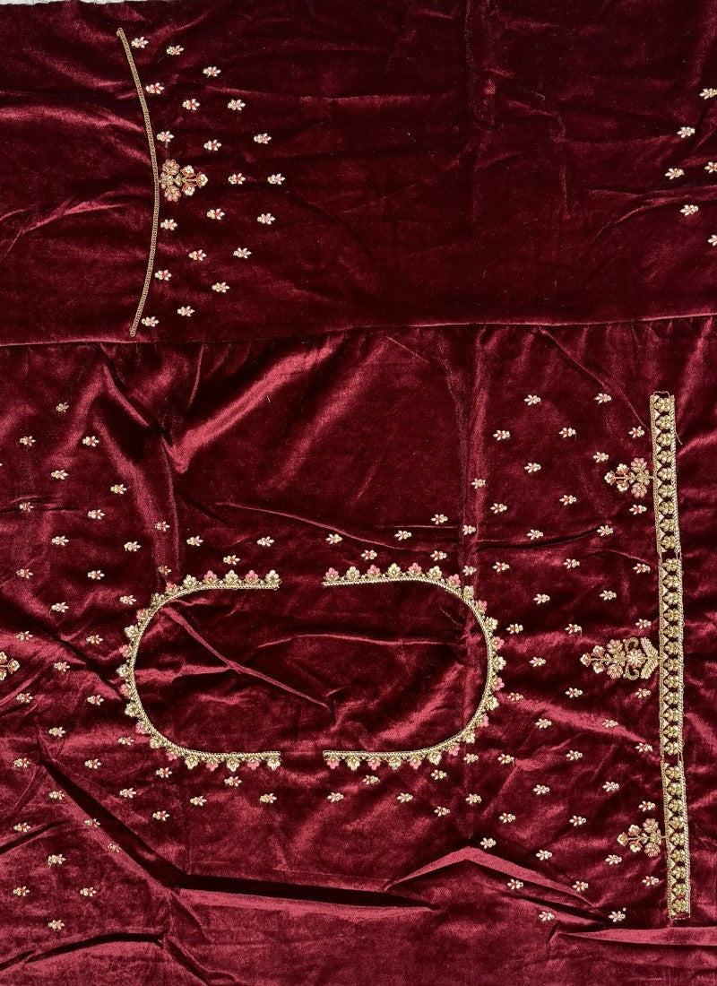 Attractive Color CombinationIn double dupatta velvet lehenga choli in Rani Pink Colour