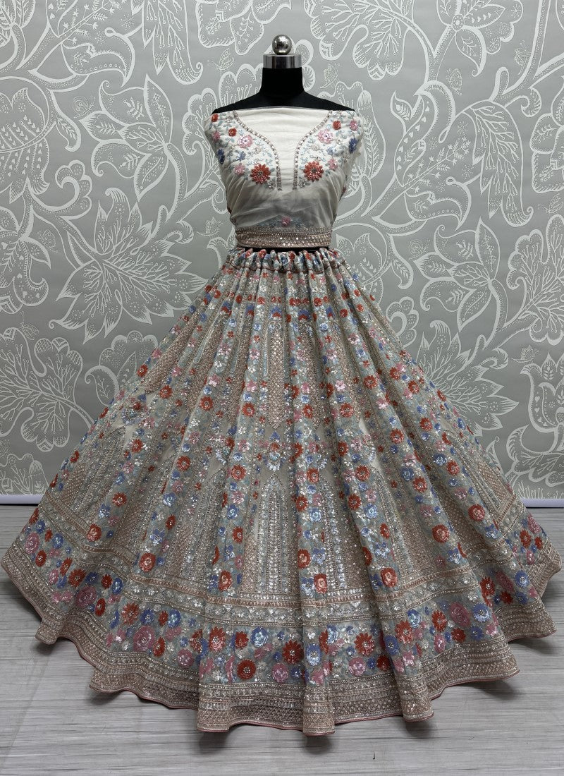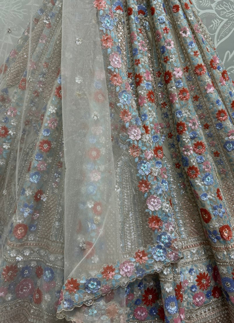 Attractive four sequins Embroidered Partywear Lehengacholi