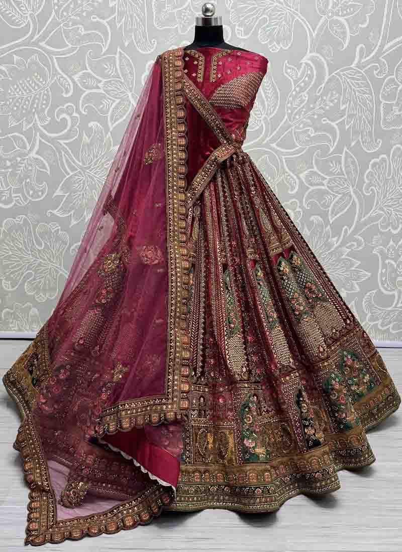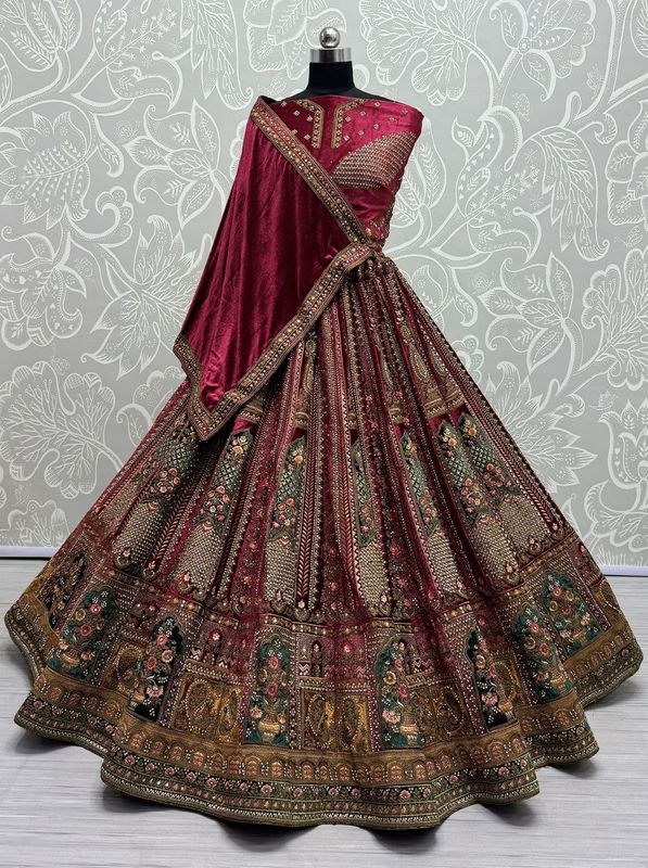 Attractive Matching Velvet Designed Embroiderys work Lehenga choli