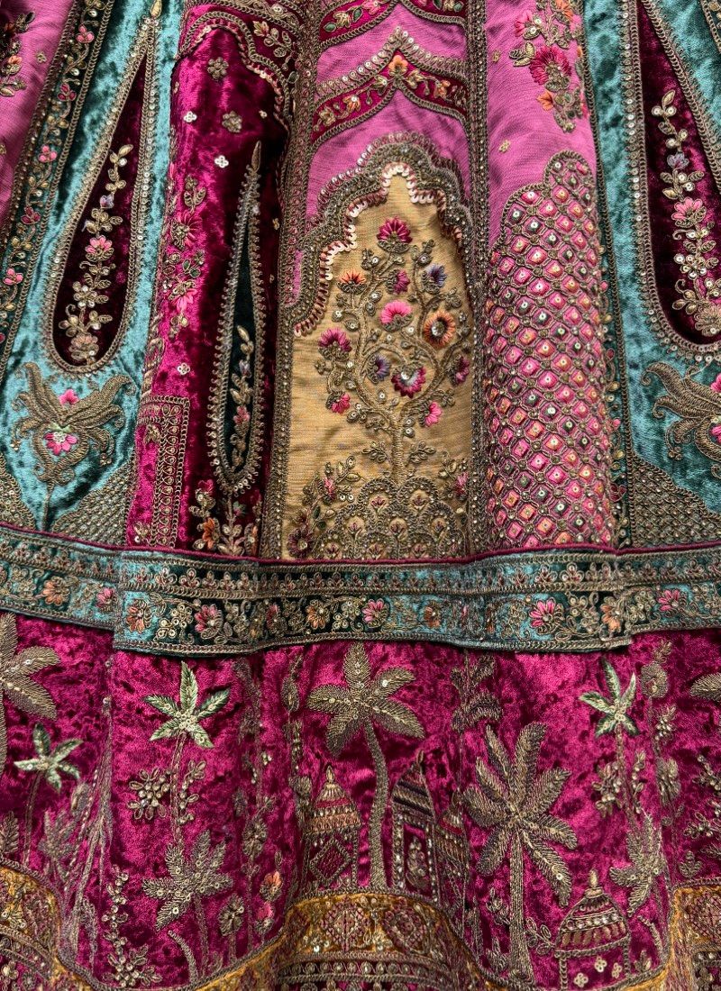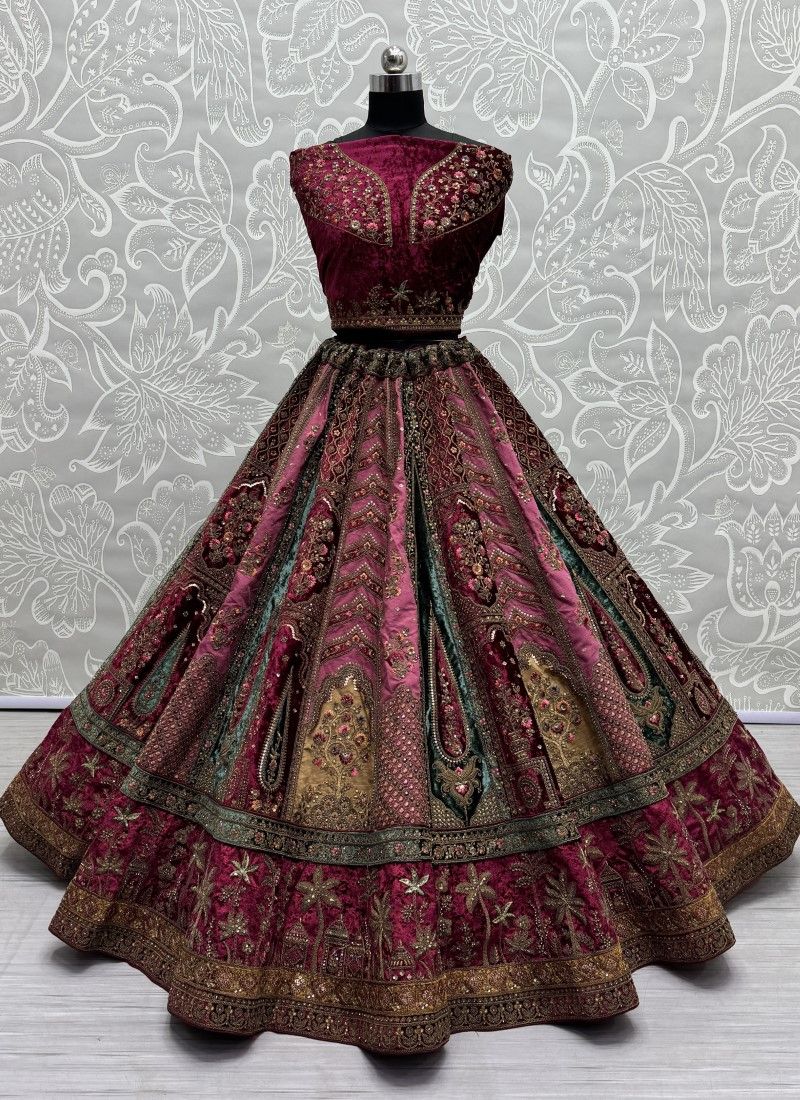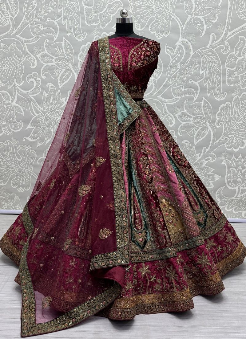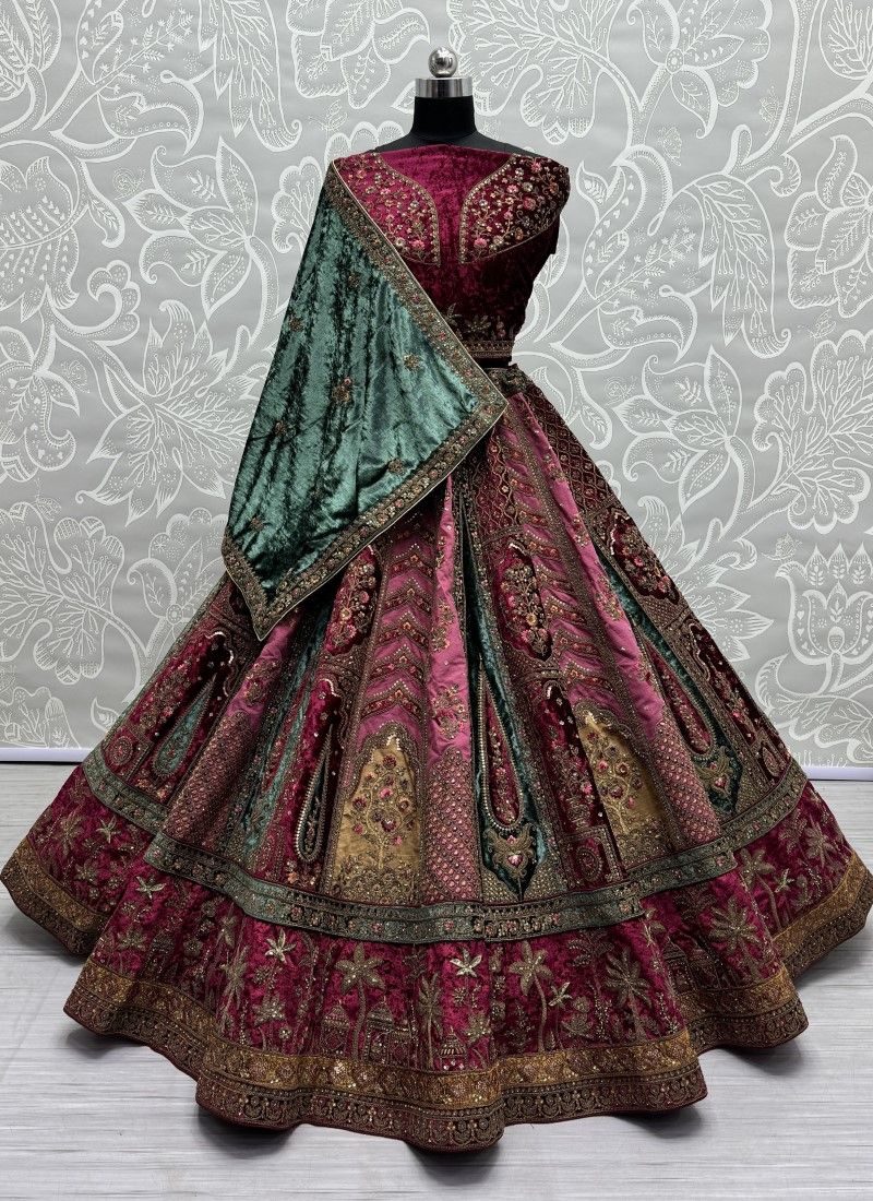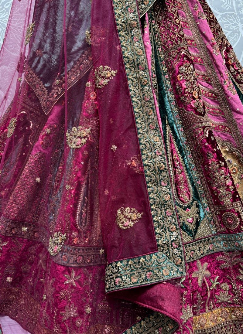 Exquisite Patch work With Designer Bridal Lehenga choli In Raspberry