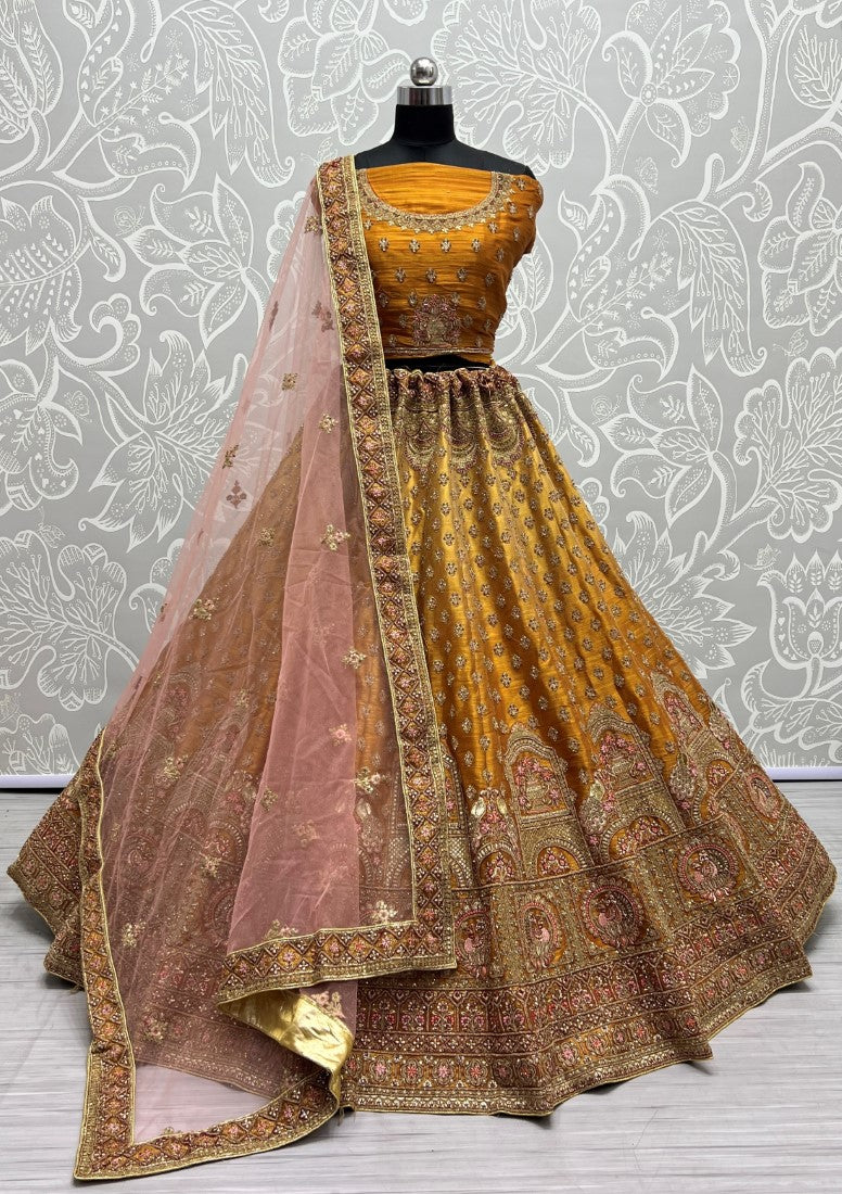 Golden Bridal shaded Net Metallic Embroidered Party wear Lehengacholi