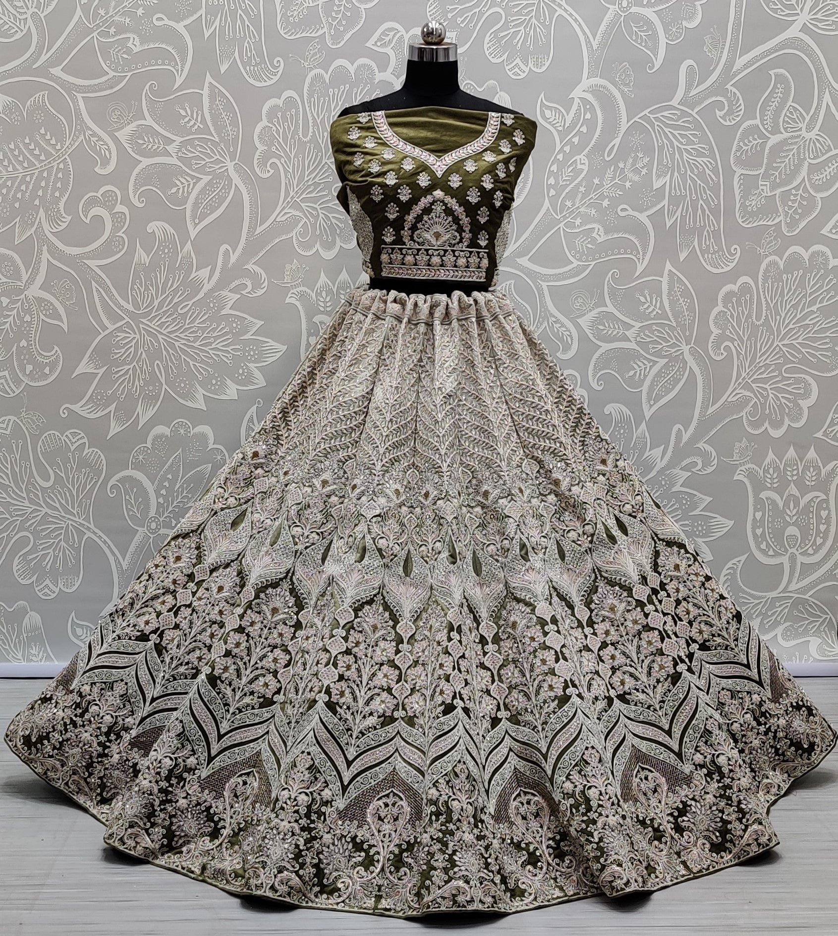 Hand crafted mirror and designer art of work light color range bridal Mehendi Lehengacholi