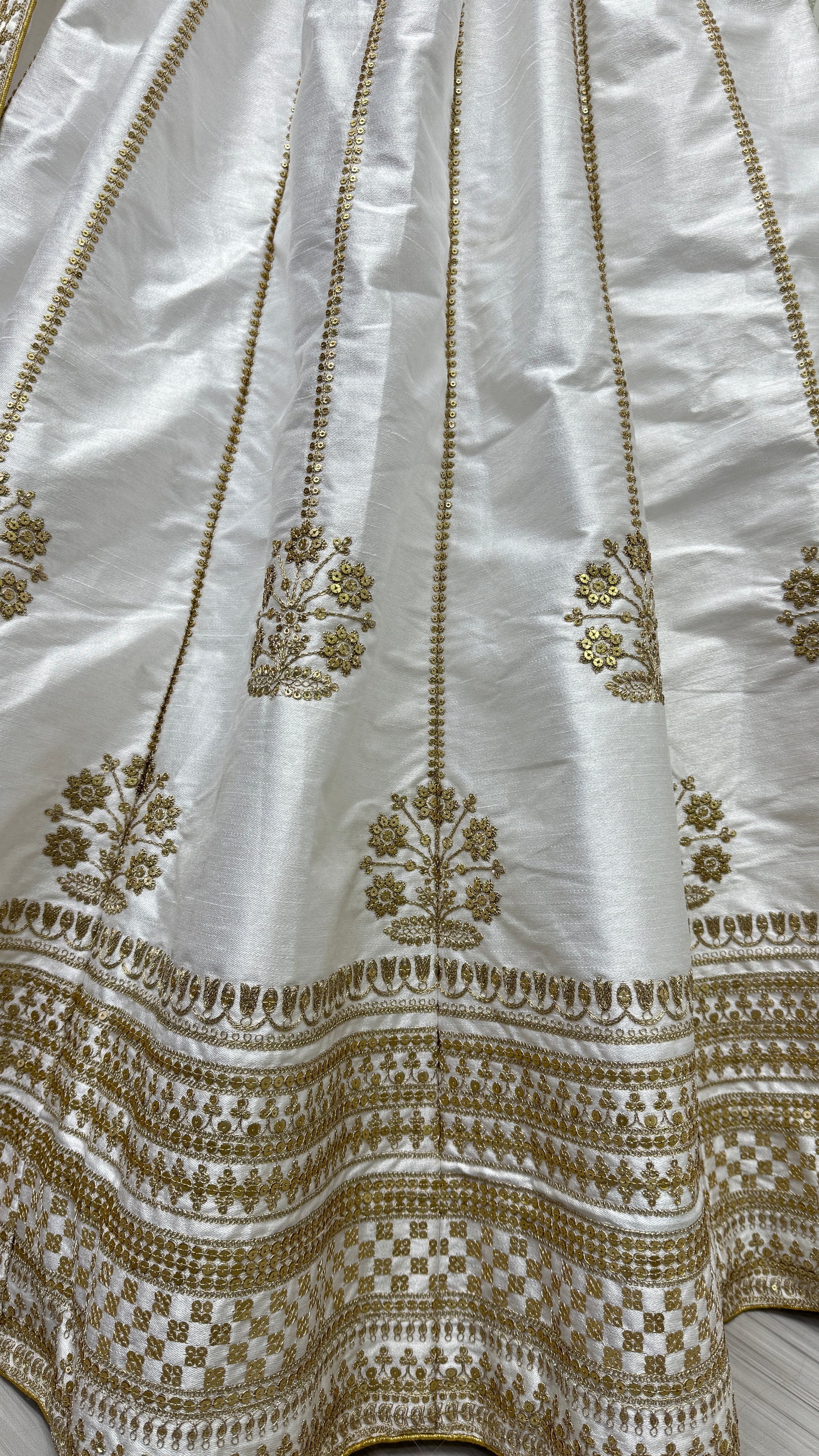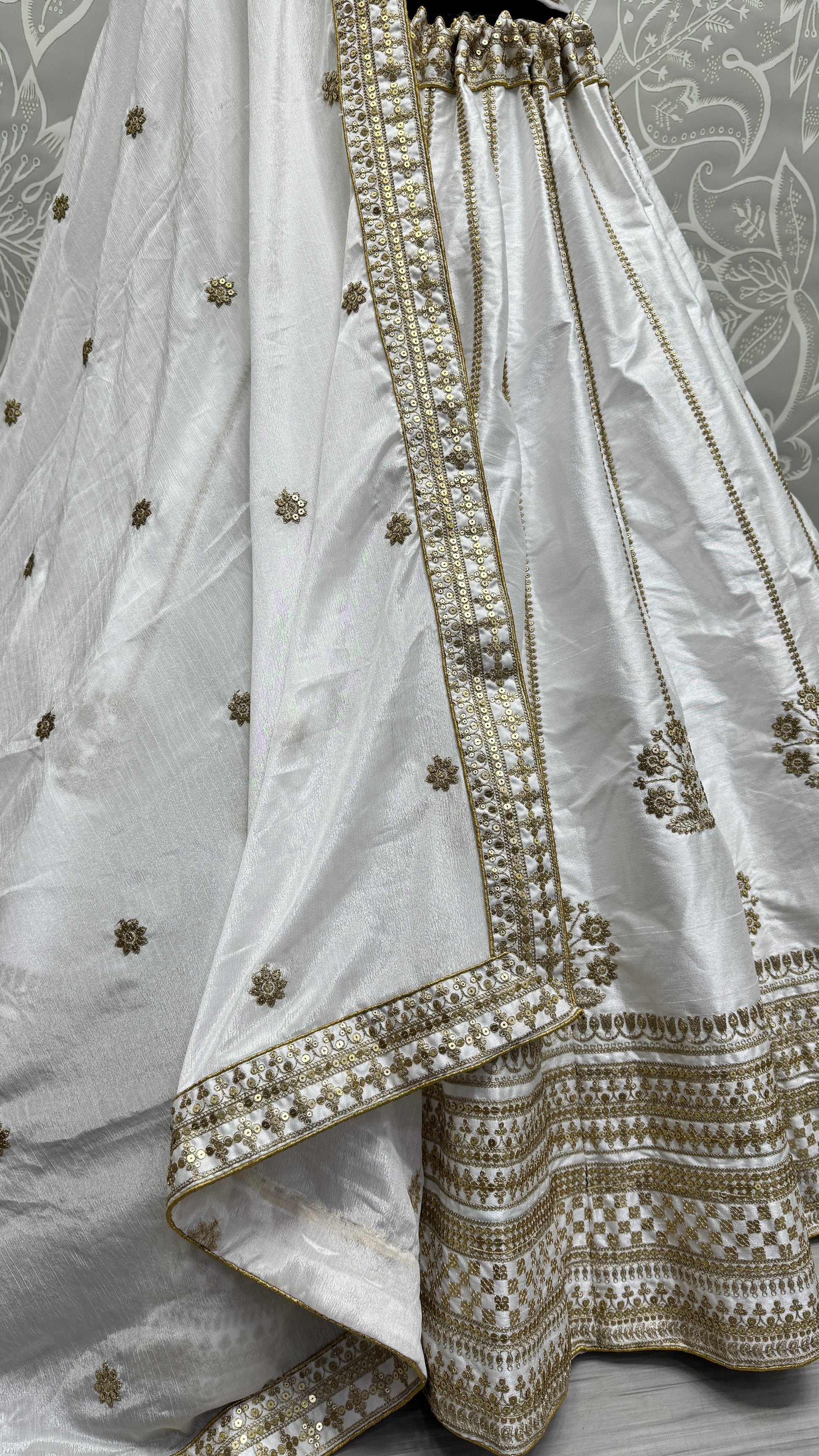 Pure Chinon Dupatta and Silk Crafted in metalic Sequins 9mm with zari Embroidery Flaired Partywear Lehengacholi