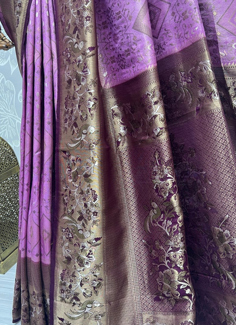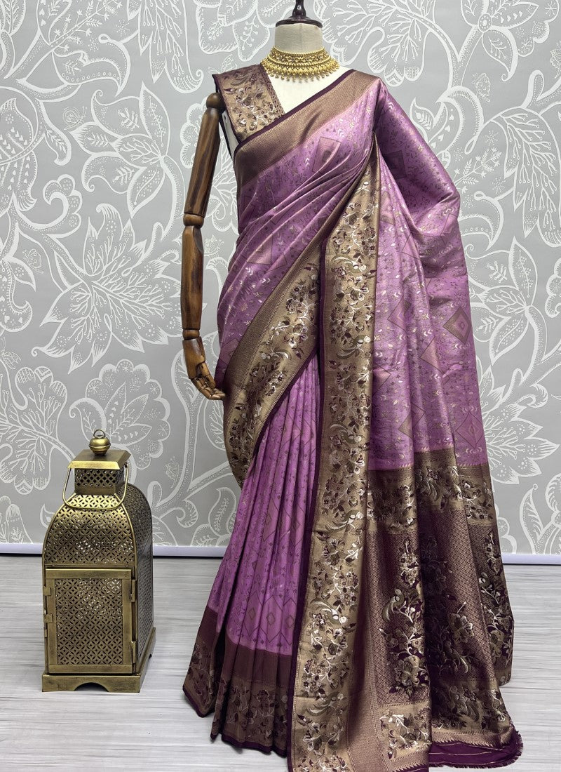 Purple Sober Flower Pattern smooth silk Wedding wear saree