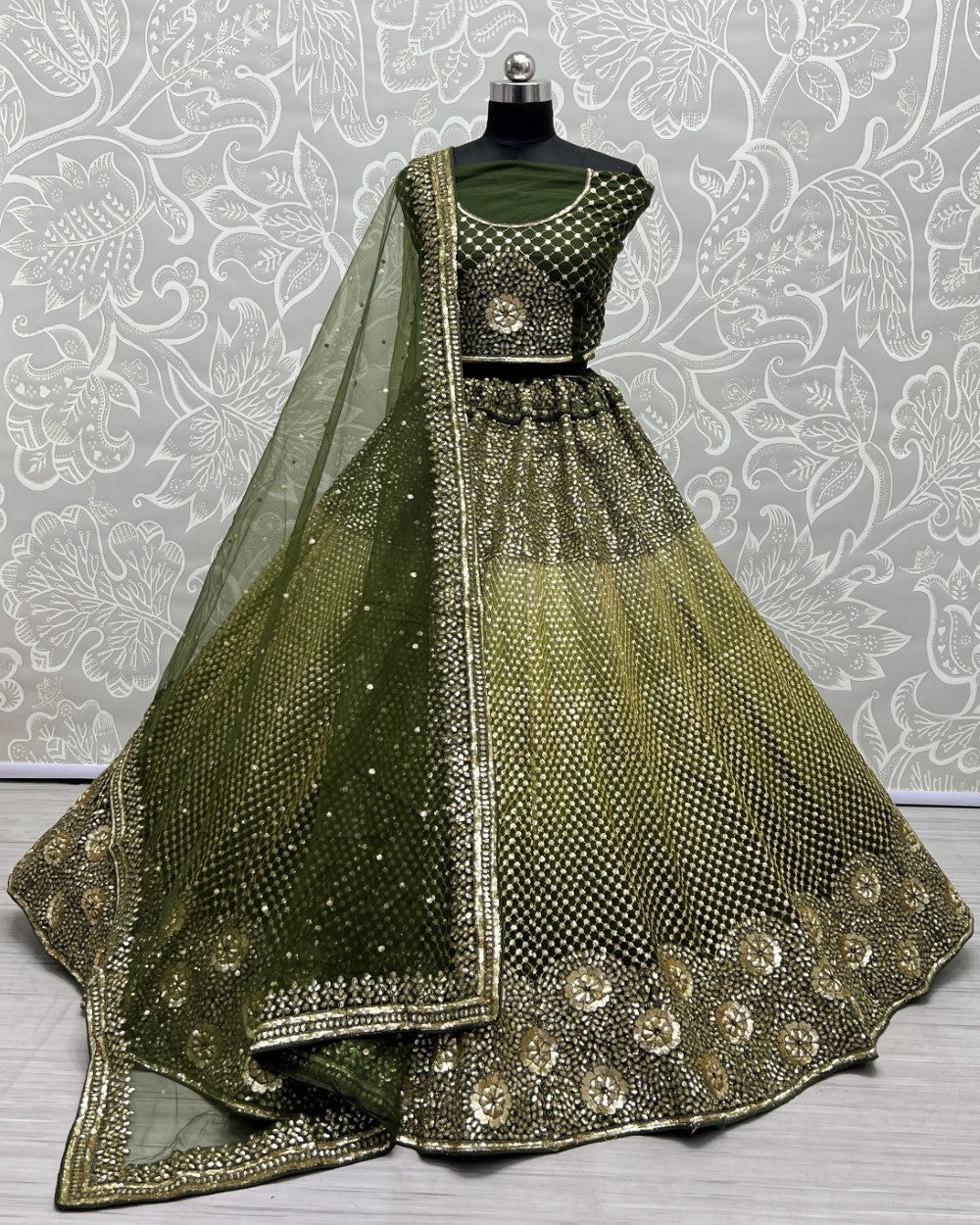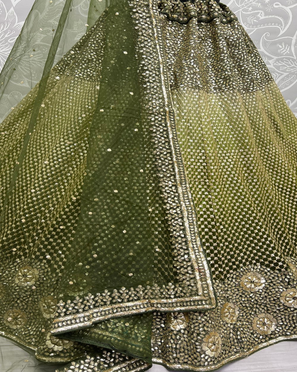 Sequins and Dori embroidery Mehendi Rasam lehenga choli