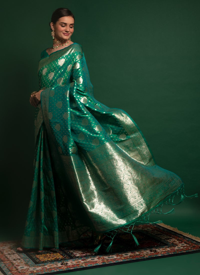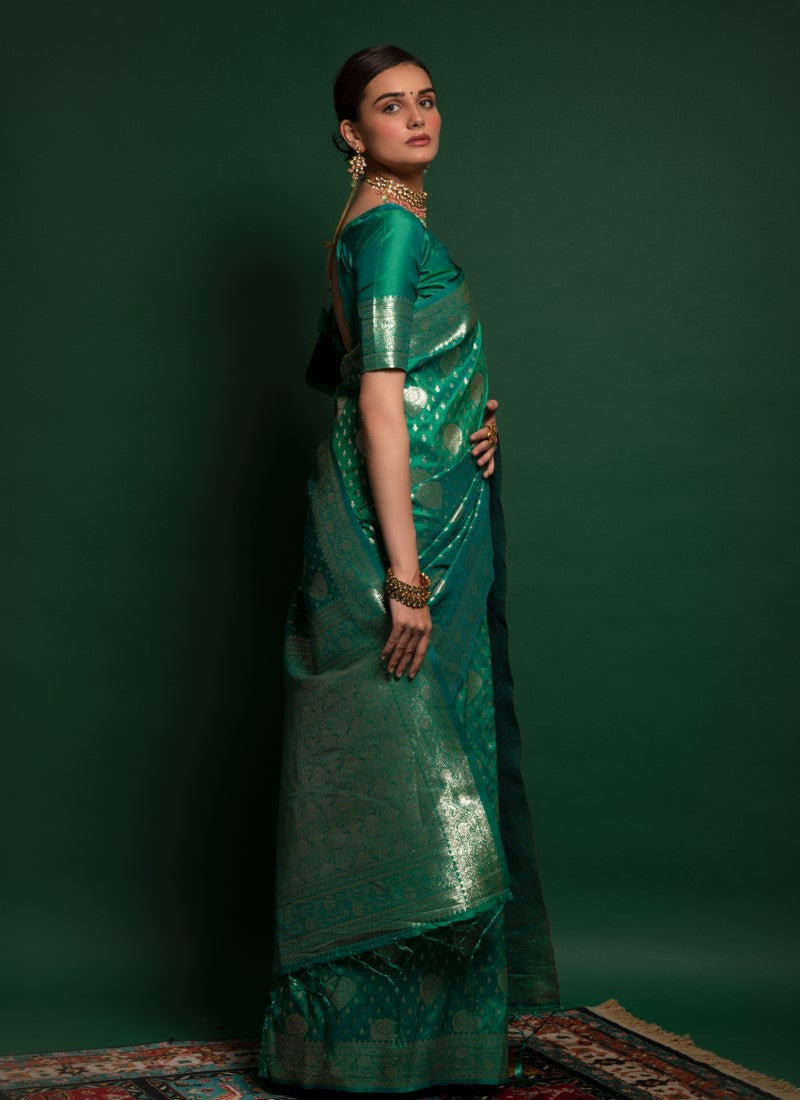 Silk Crafted with selected Zari and dhaga matching extra ordinary Silk Saree Green