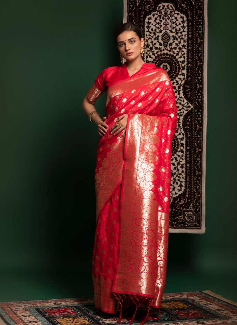 Silk Crafted with selected Zari and dhaga matching extra ordinary Silk Saree Red