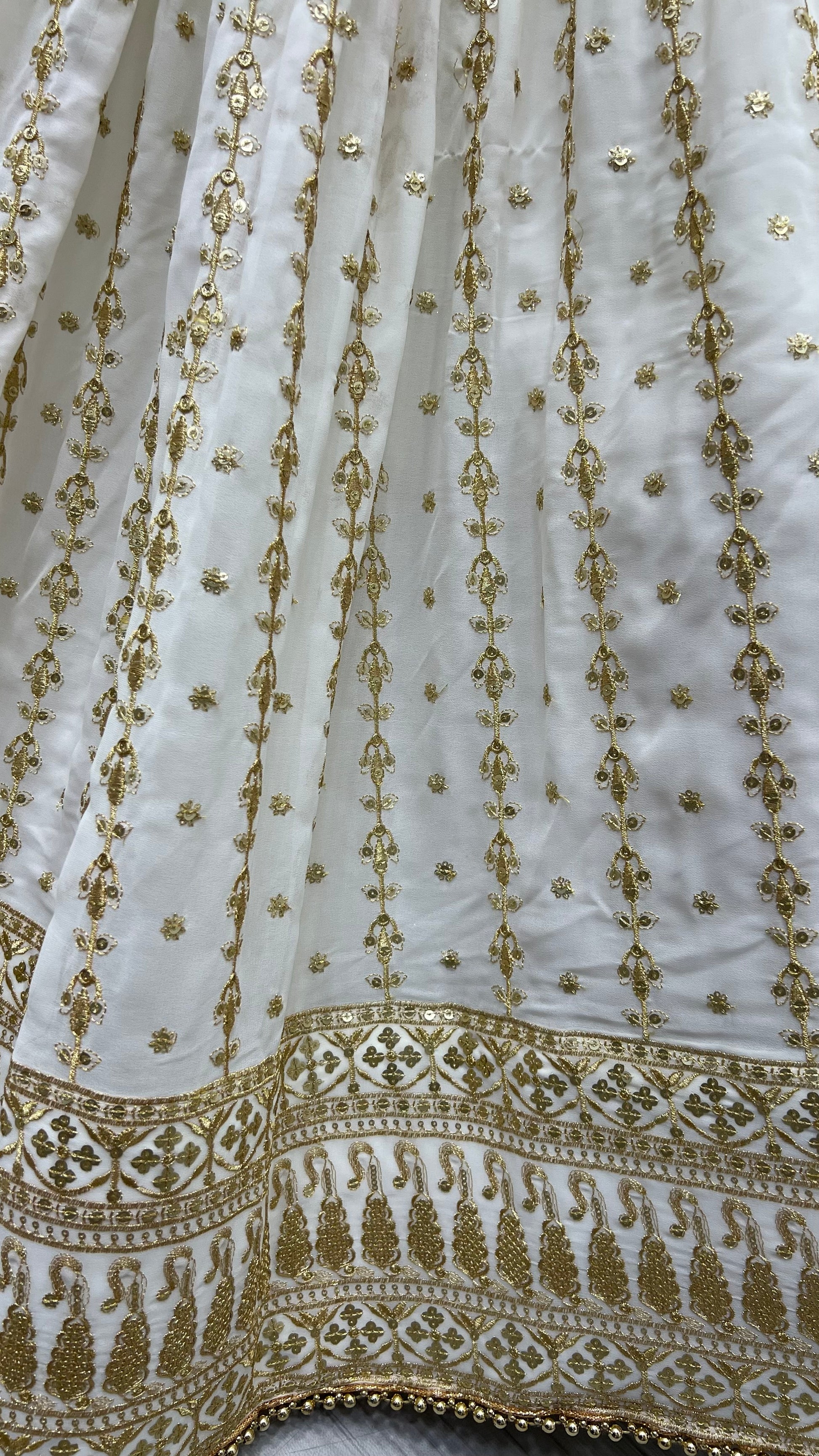 Smoothest blooming Georgette effect-full embroidered Flared wedding White Lehengacholi