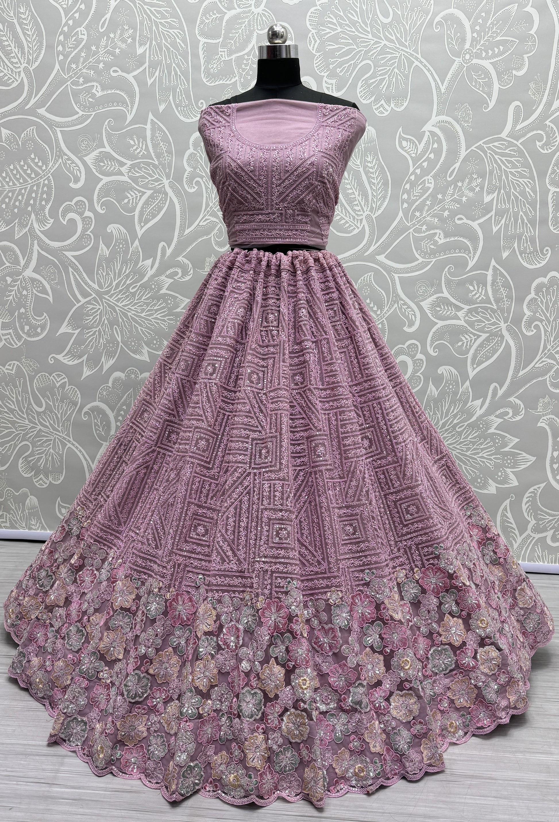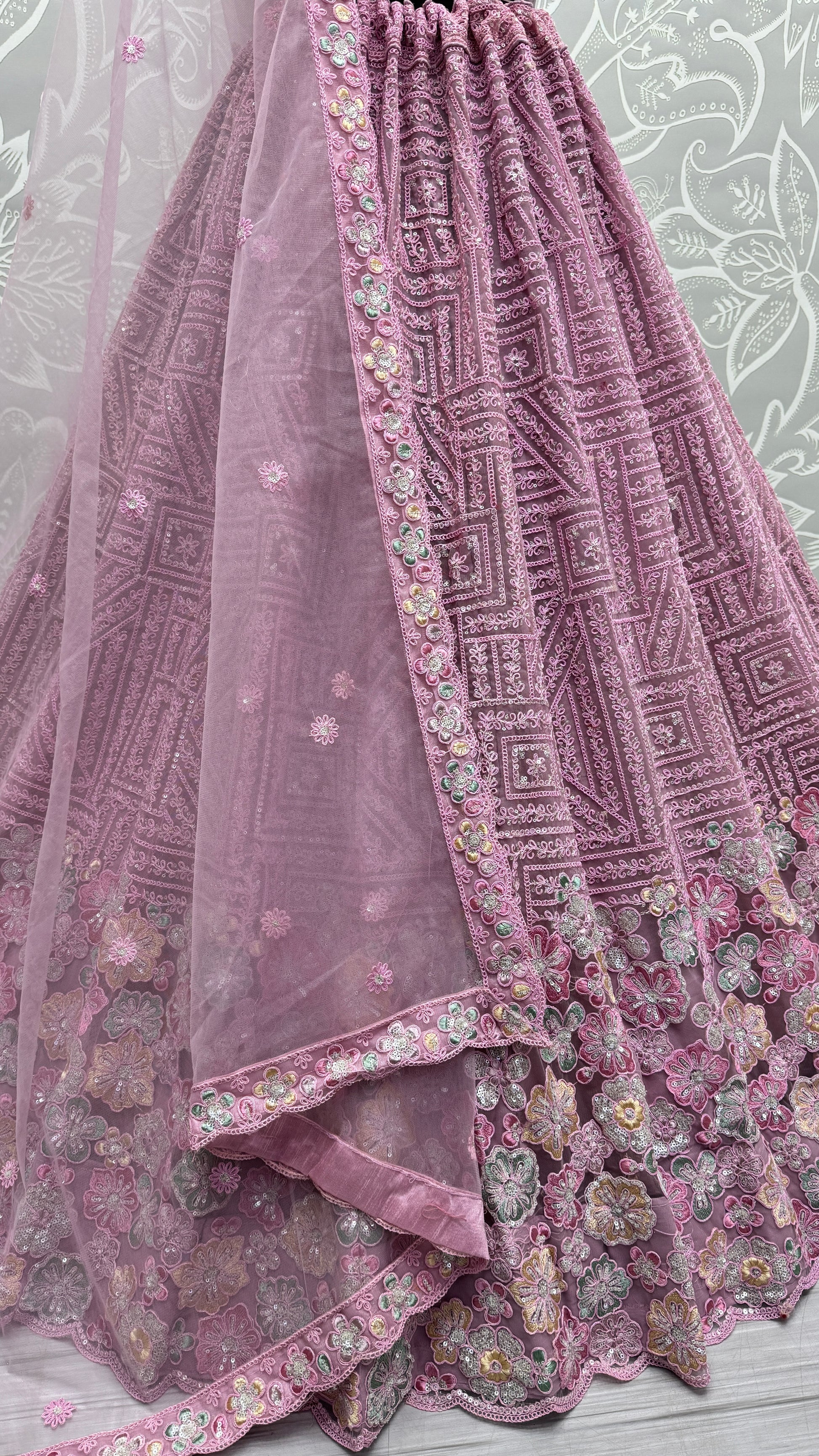 Flower Work Combine with Dori and sequins embroidered Bridesmaids Lehengacholi