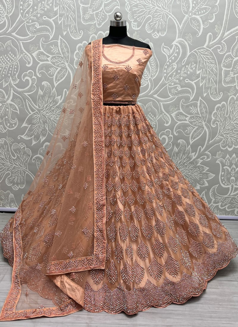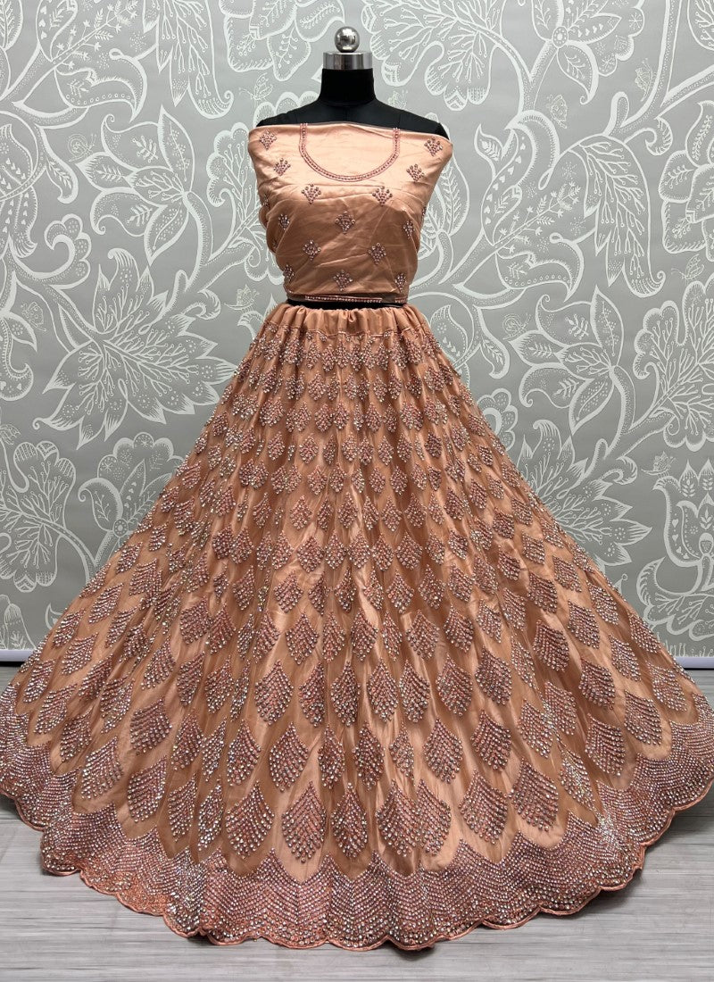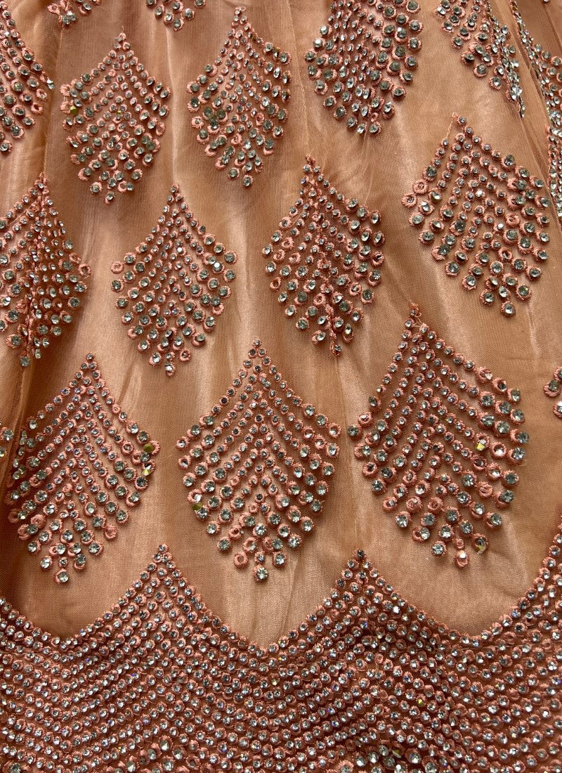 Various High Quality Zircon Diamond studded Designer Partywear Peach Lehengacholi